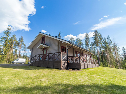 Puurakenteinen talo 2007, keittiö, olohuone, makuuhuone 2 vuodetta, toinen makuuhuone 3 vuodetta, kolmas makuuhuone 3 vuodetta + pinnasänky, makuuparvi (20m²) 4 vuodetta, kodinhoitohuone, pesuhuone, sauna (sähkökiuas) jossa 2 suihkua, katettu terassi. Parvelle jyrkät portaat. Talossa on koneellinen ilmastointi ja 2 ilmalämpöpumppua. Kuivausrumpu ja sateliittikanavat.